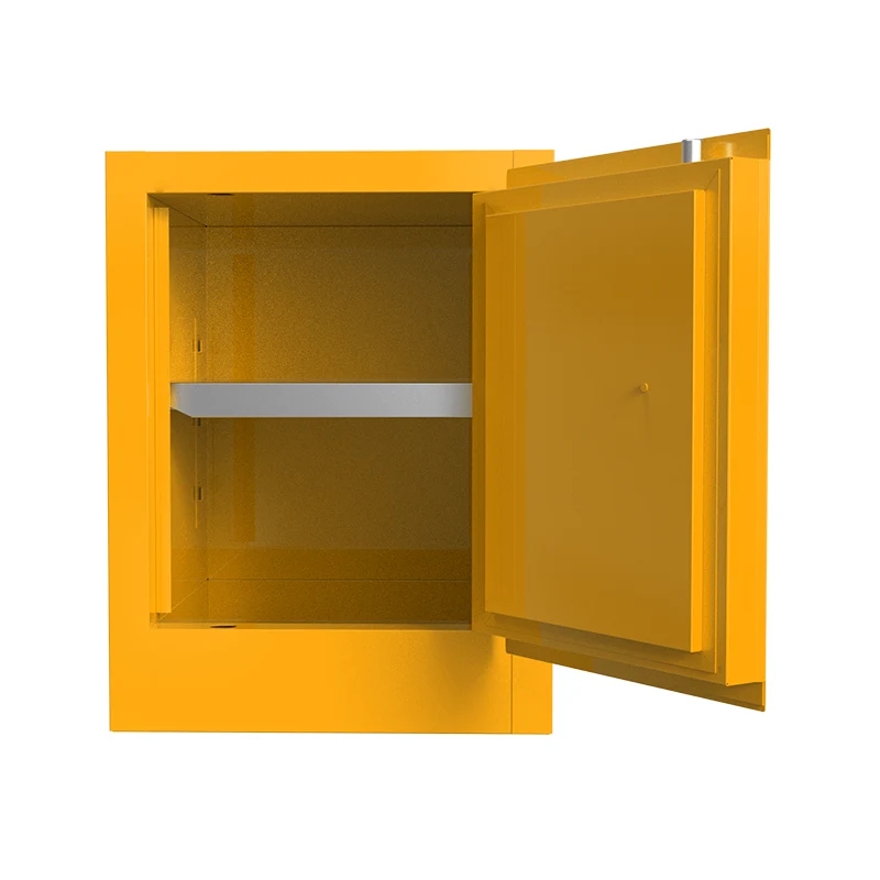 Məhsulun adı: Yanan Saxlama Şkafı Məhsul Modeli: GS004 Xarici Ölçülər: H560×W430×D430mm Daxili Ölçülər: H460×W350×D330mm Rəf Ölçüləri: W348×D330×H25mm Həcmi: 4/15 (gallon/litr) Çəkisi: 25 kq Qapının Açılış üsulu: Əllə/Avtomatik Rəflər: Bir tənzimlənən rəf Qapı Tipi: Tək qapı Kilidləmə cihazı: İkiqat kilidlər Rəng: Sarı (epoksi qatran spreyi - boyalı) Qeyd:500ml reagent şüşələrinə əsasən, hər rəfdə 9 şüşə olmaqla 2 rəf yerləşdirilə bilər. |